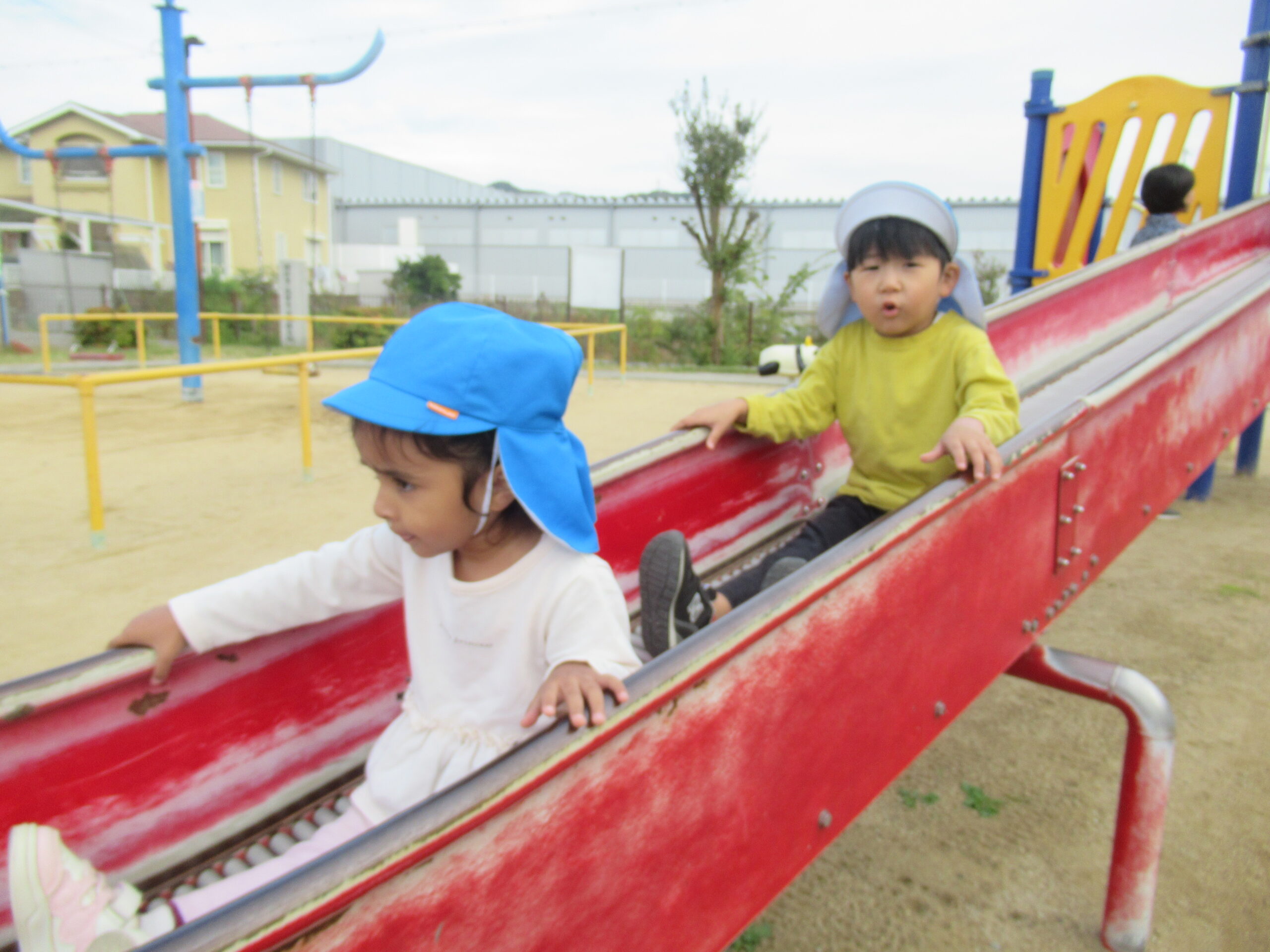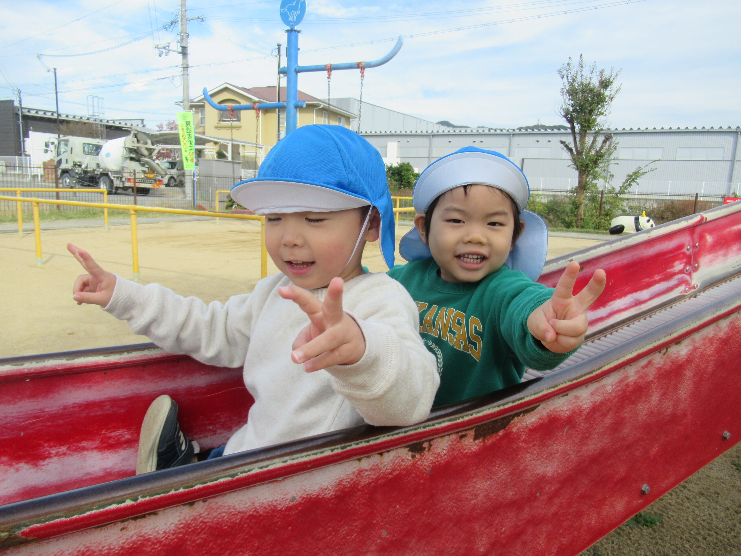 公園へお散歩に行きました!みんなで行くのは初めてで子どもたちはニコニコ笑顔で大興奮でした。行き帰りもとても元気で帰り道には「めっちゃ楽しかった~」「明日も行きたい!」と満足そうな子どもたちでした☆彡