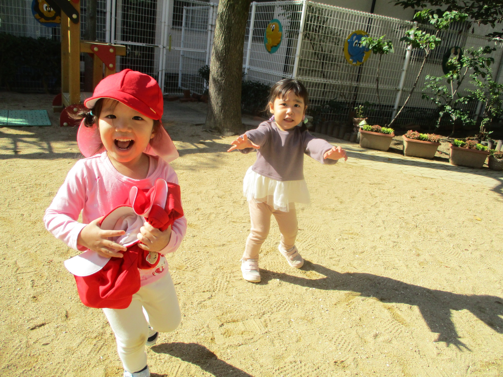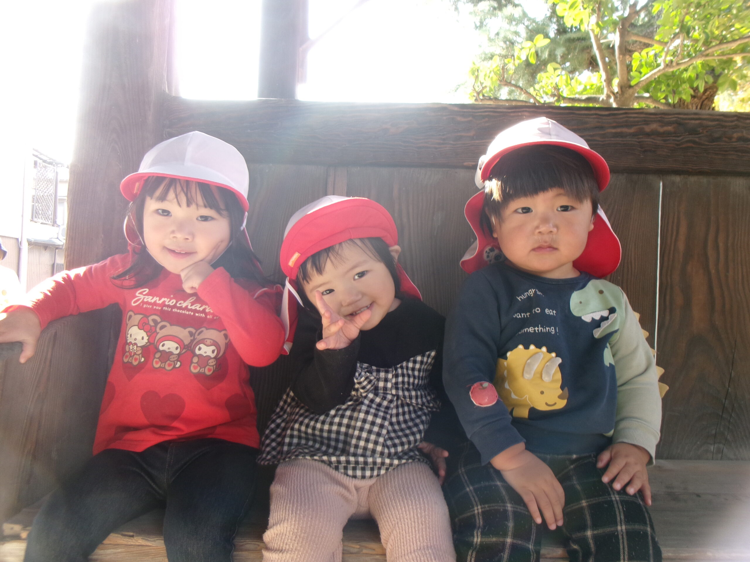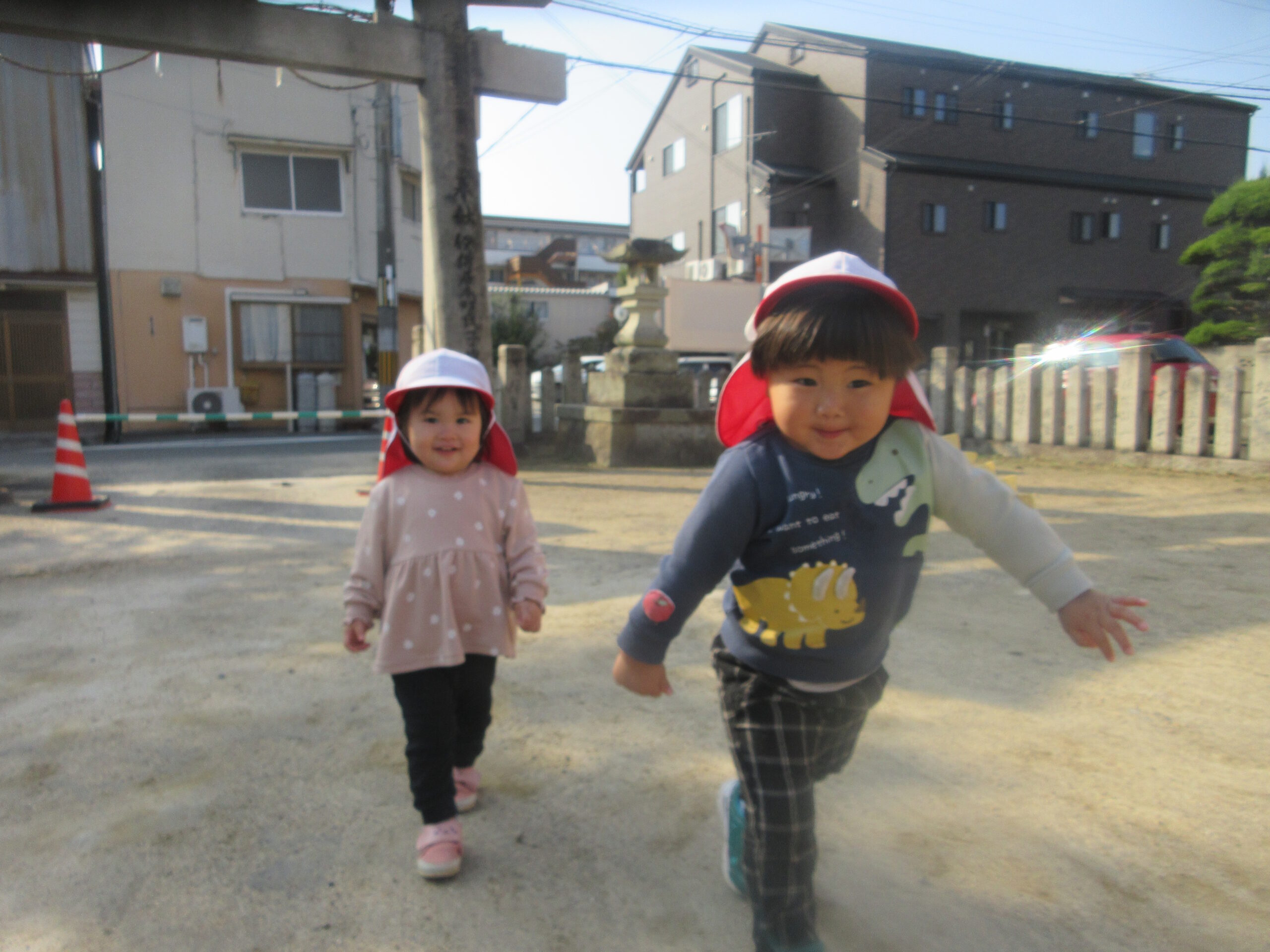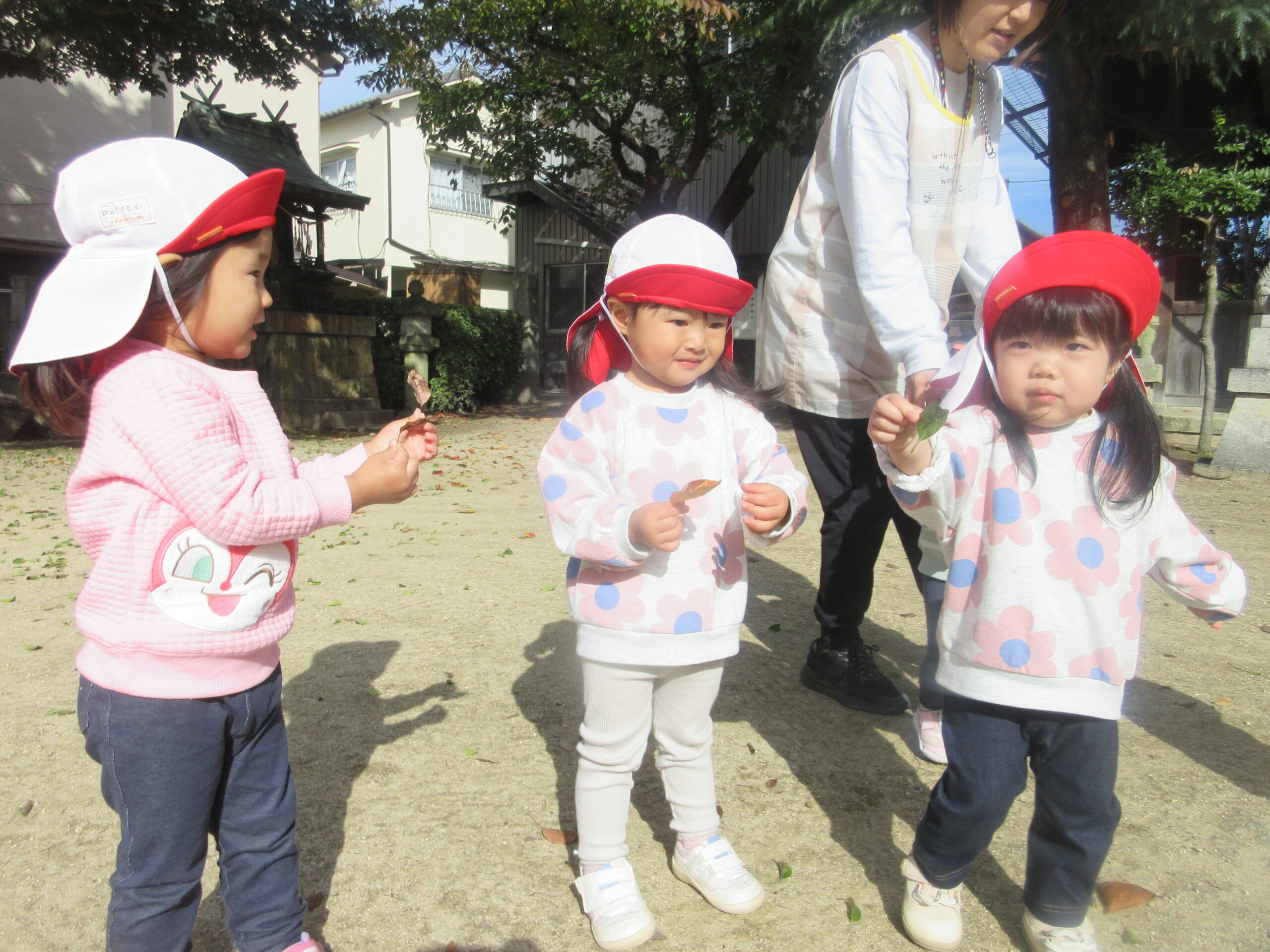 神社にお散歩に行きました。落ち葉を拾ったり、みんなで追いかけっこをしたりと体を良く動かしました!