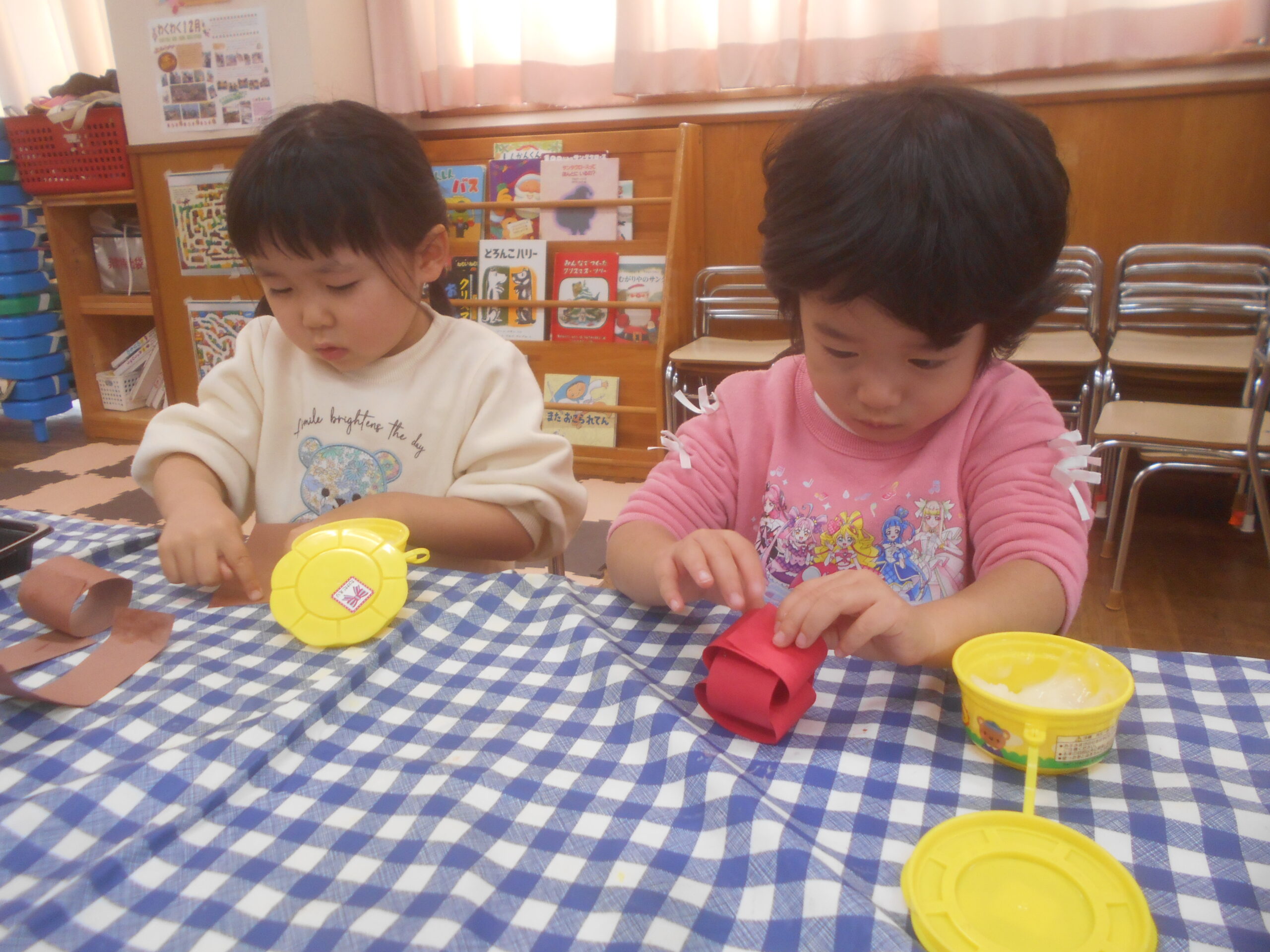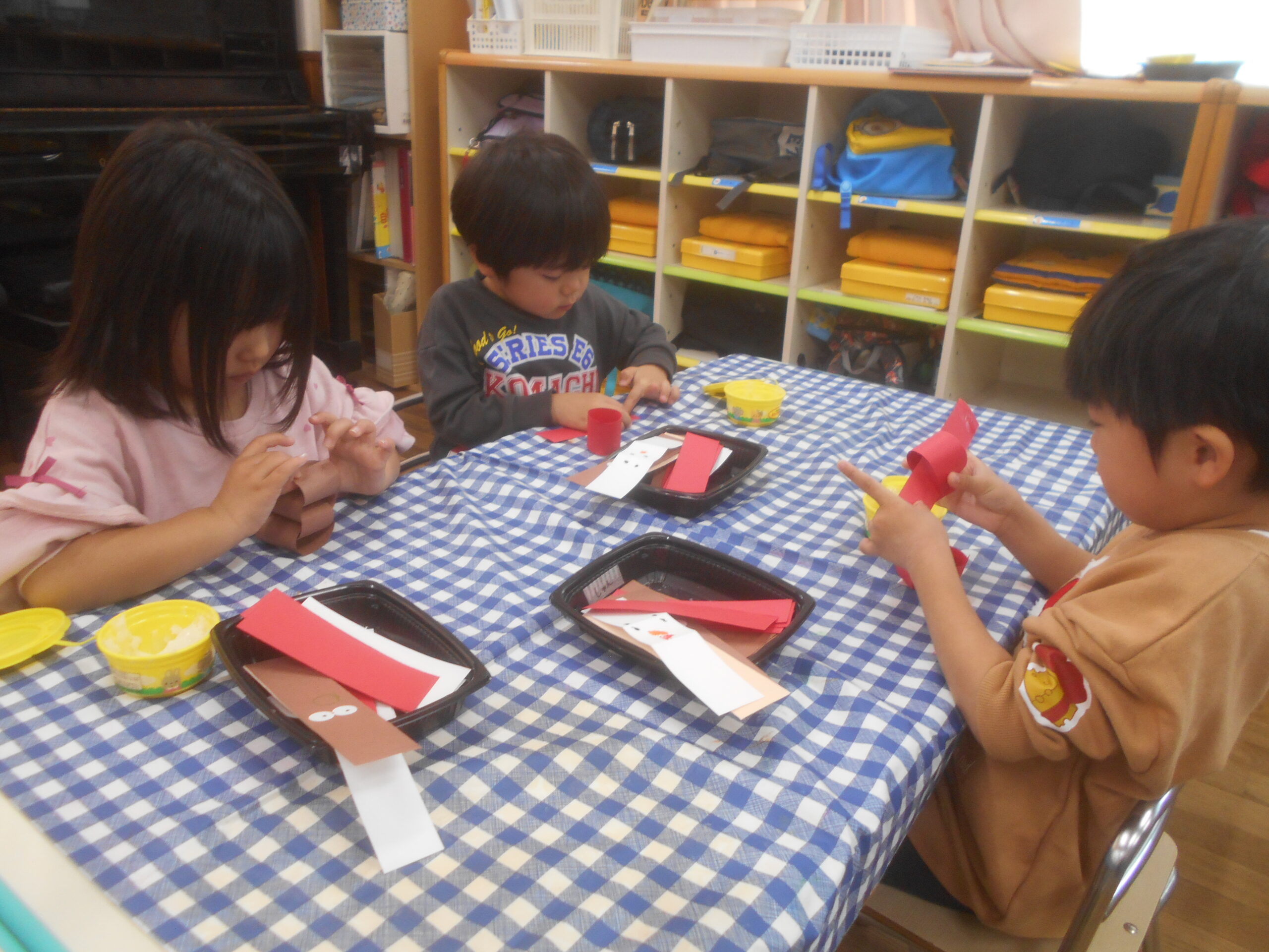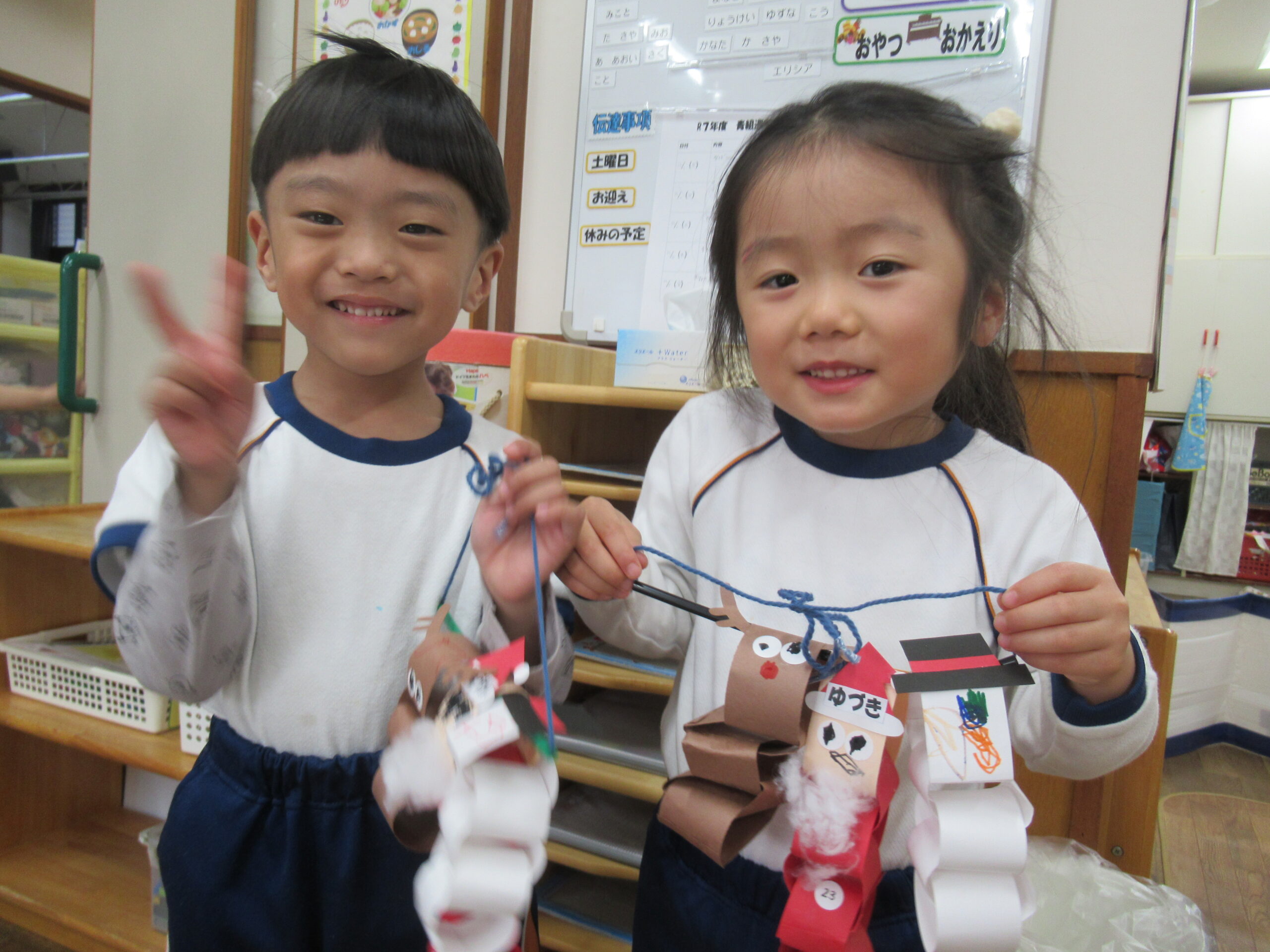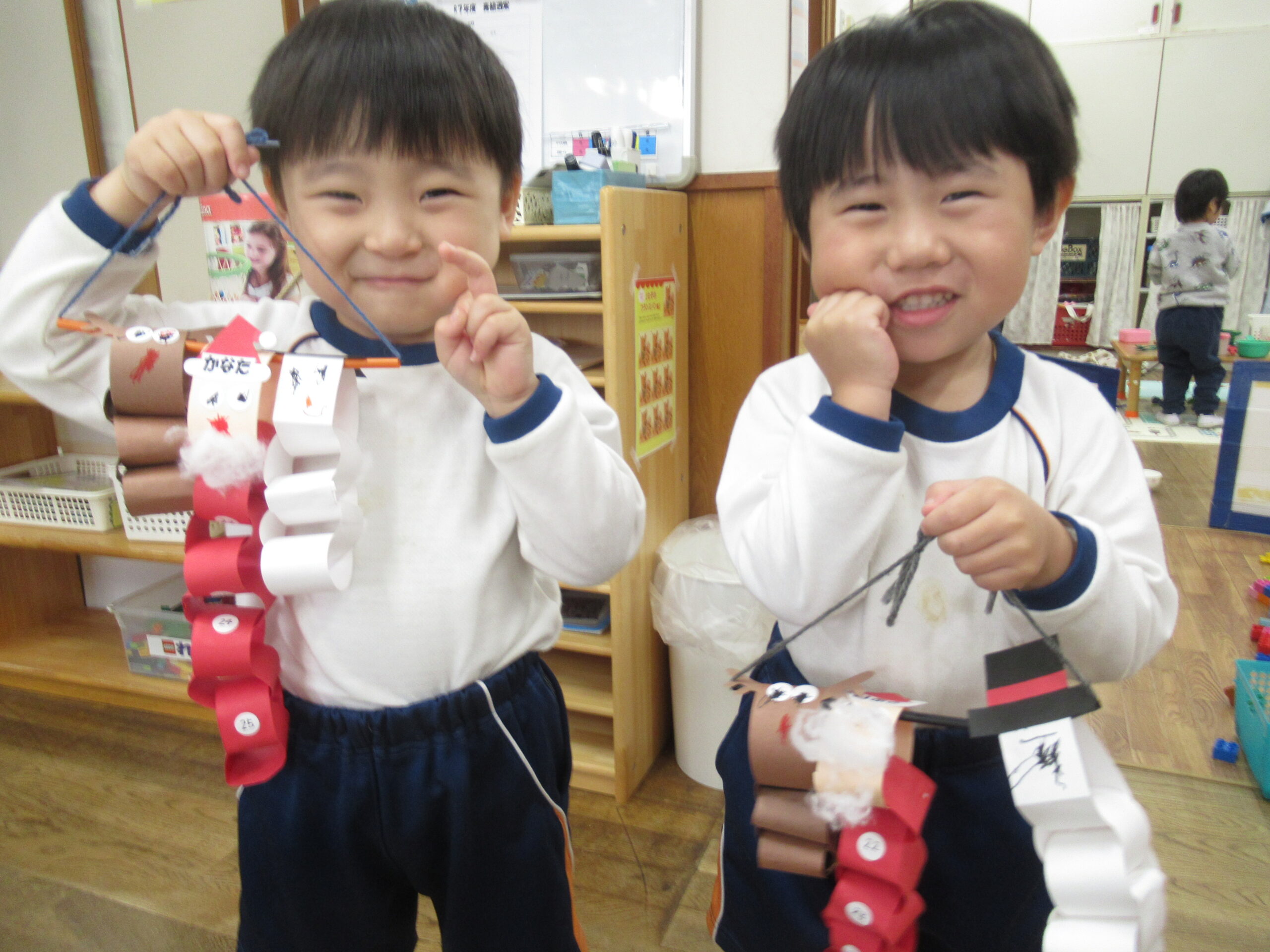 クリスマスの製作をしました。初めての輪繋ぎに苦戦してしまうのかと思っていましたが、想像より子どもたちはスムーズに行うことができました!かわいいクリスマス飾りが完成しましたよ。