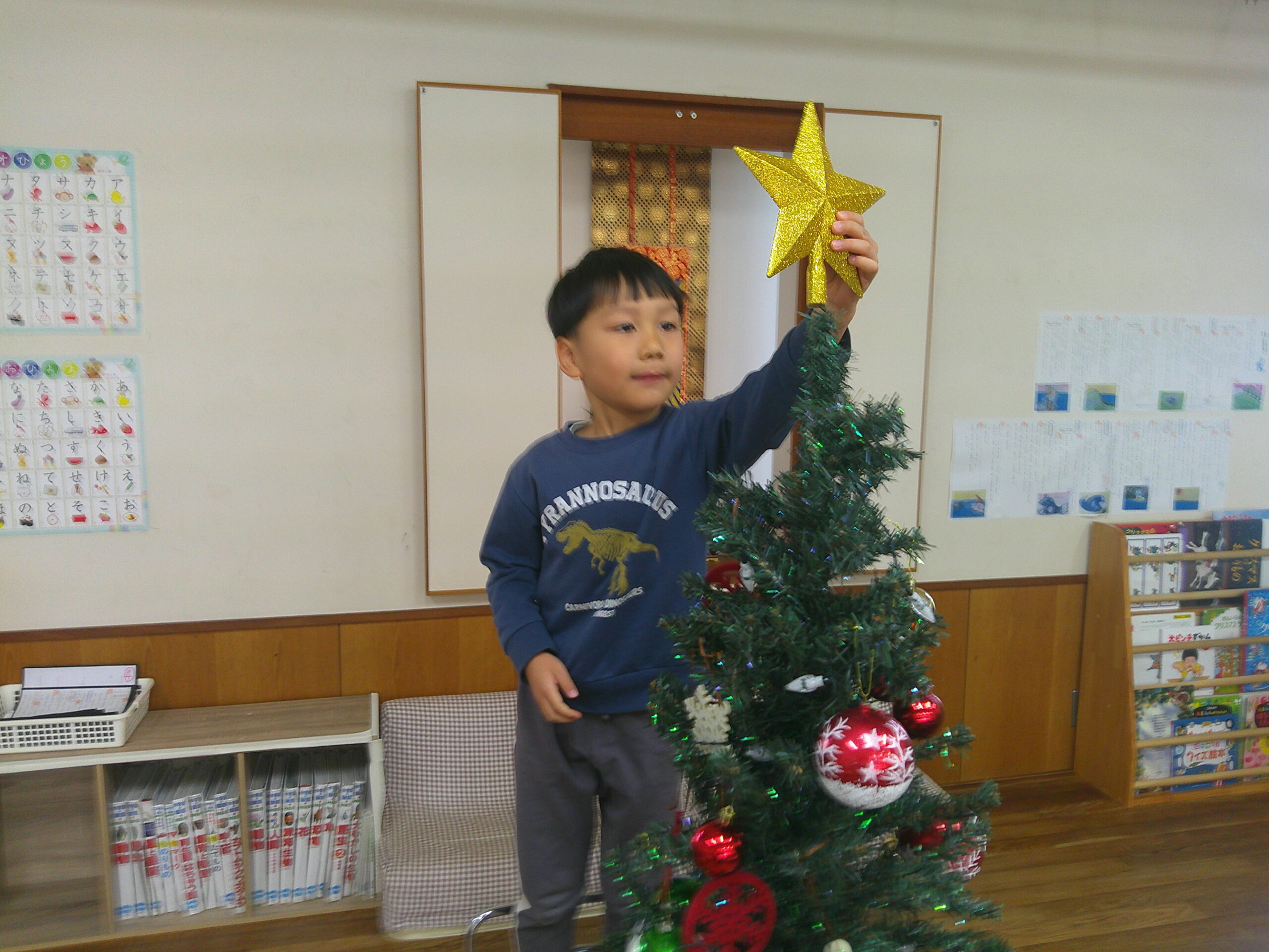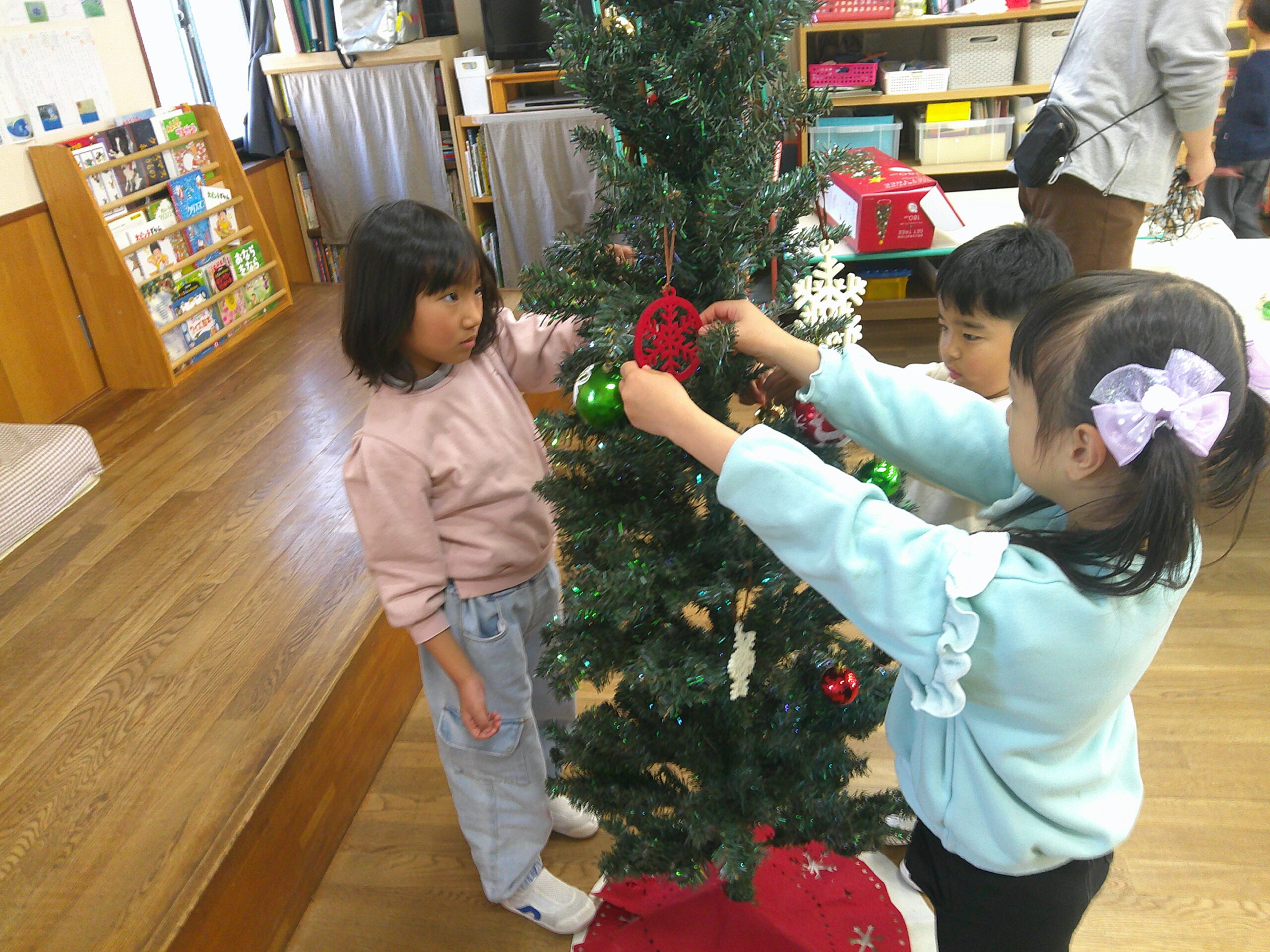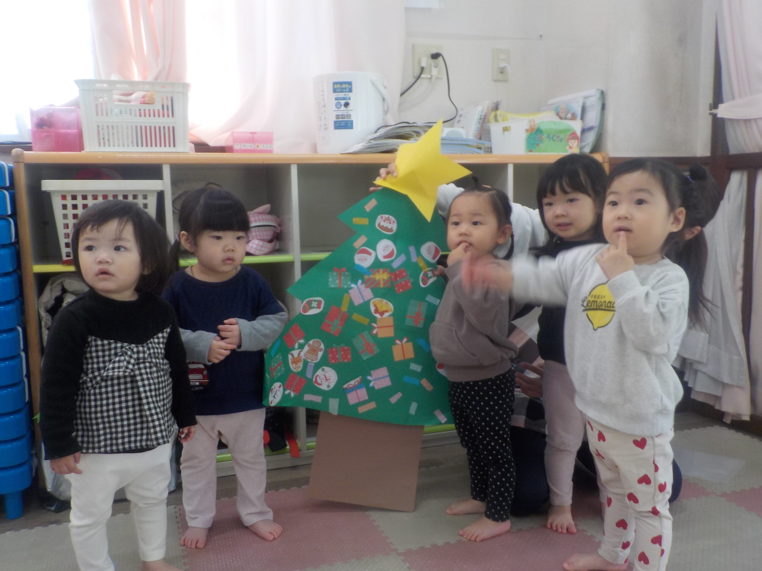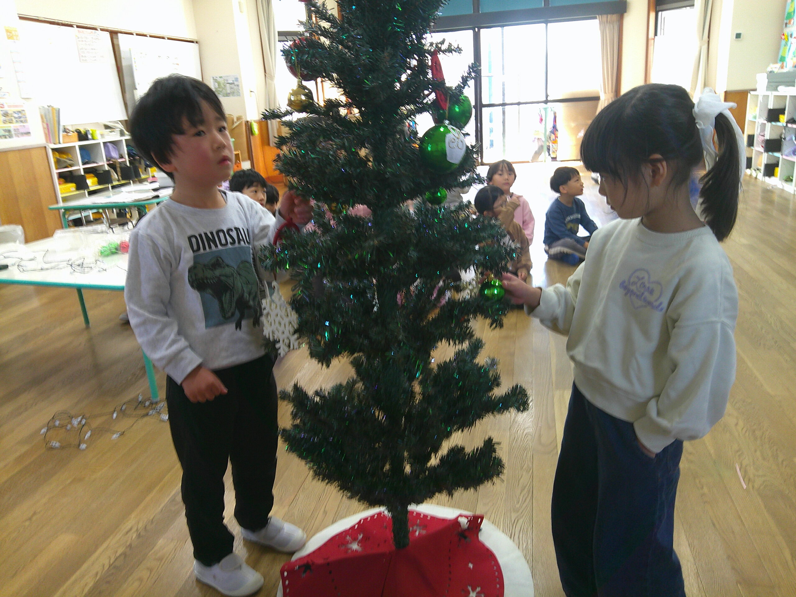 お部屋のクリスマスツリーにもみんなで飾りつけをして、クリスマスが待ち遠しい子どもたちでした♪