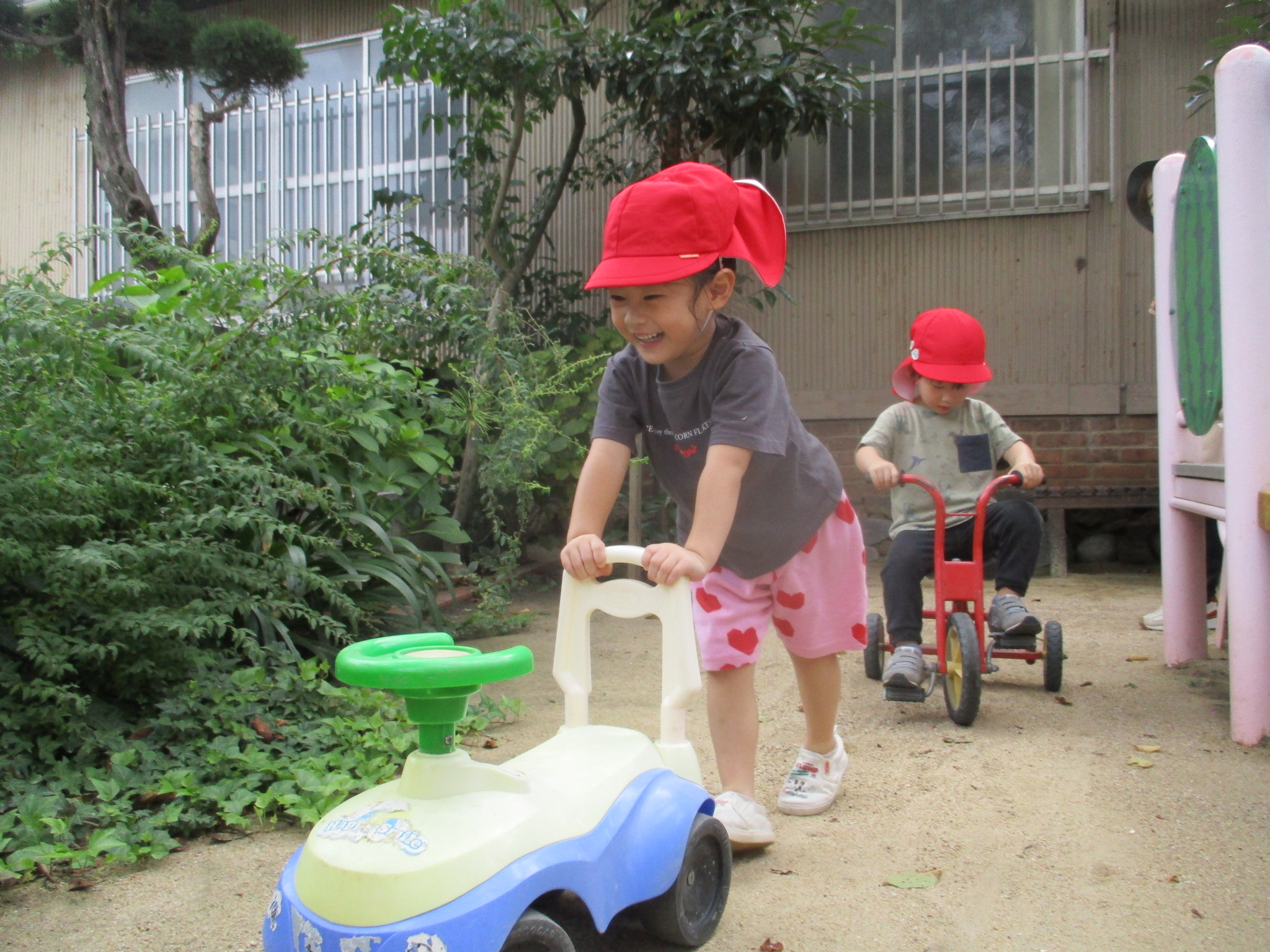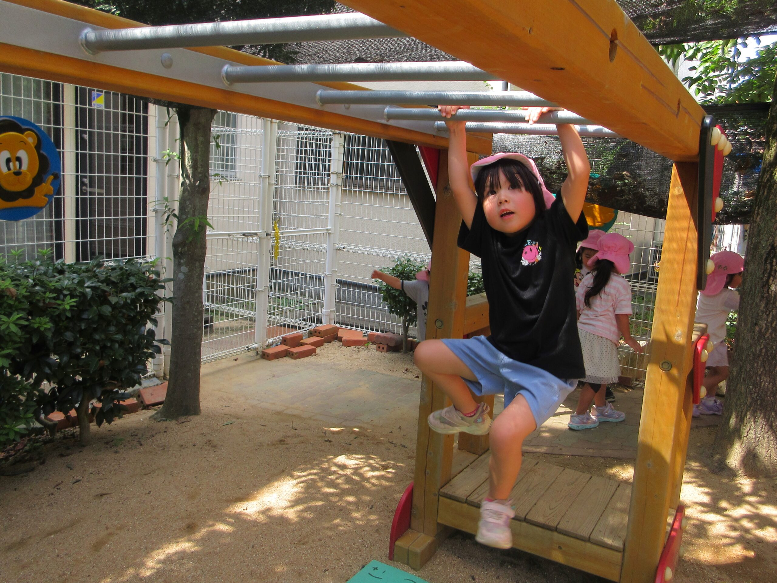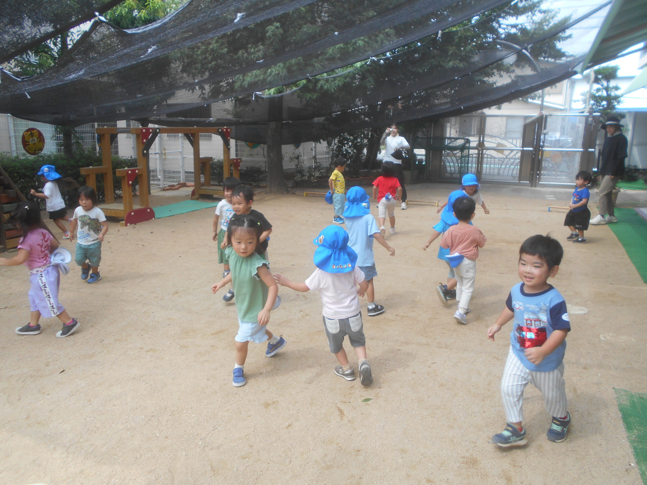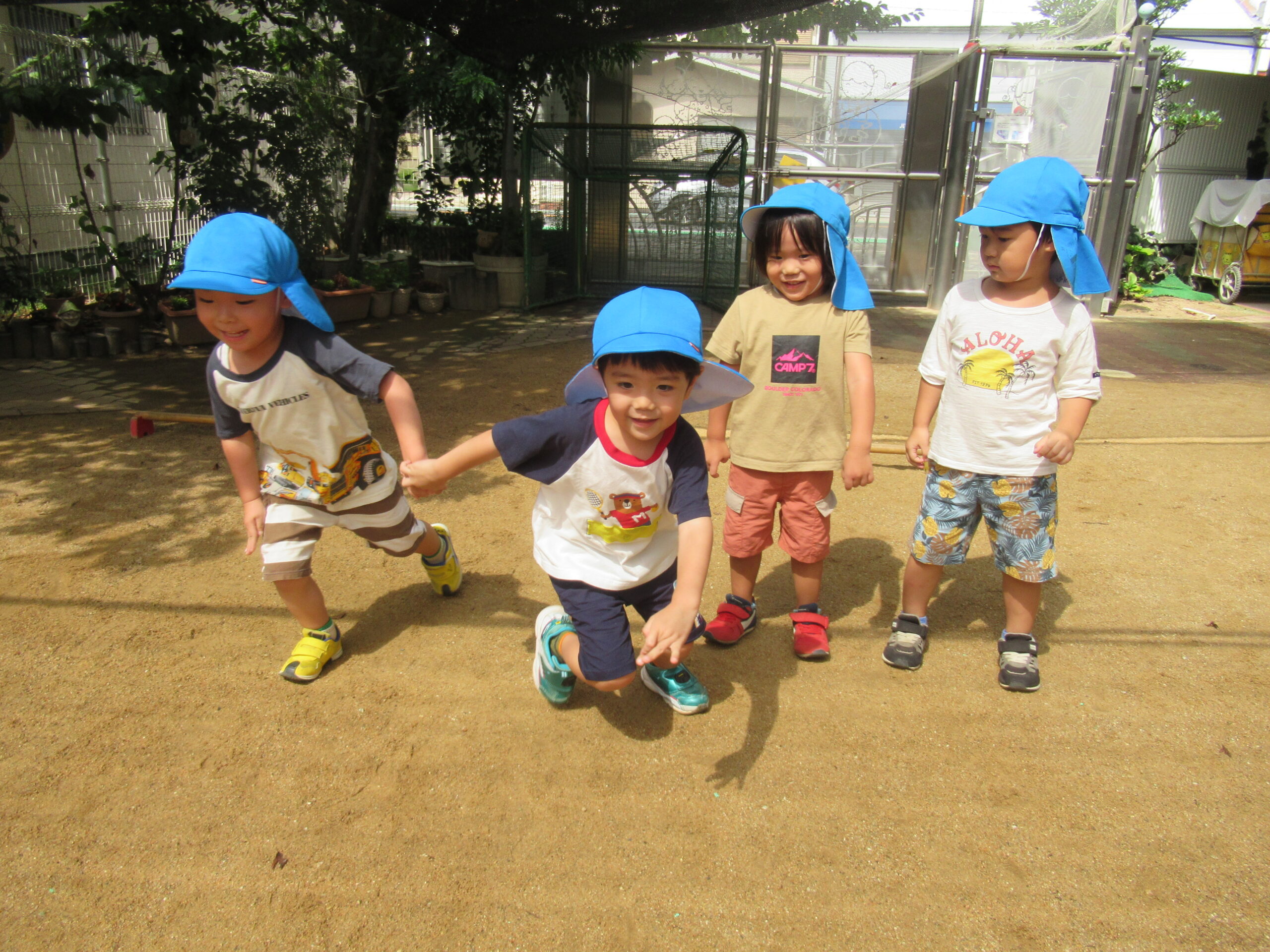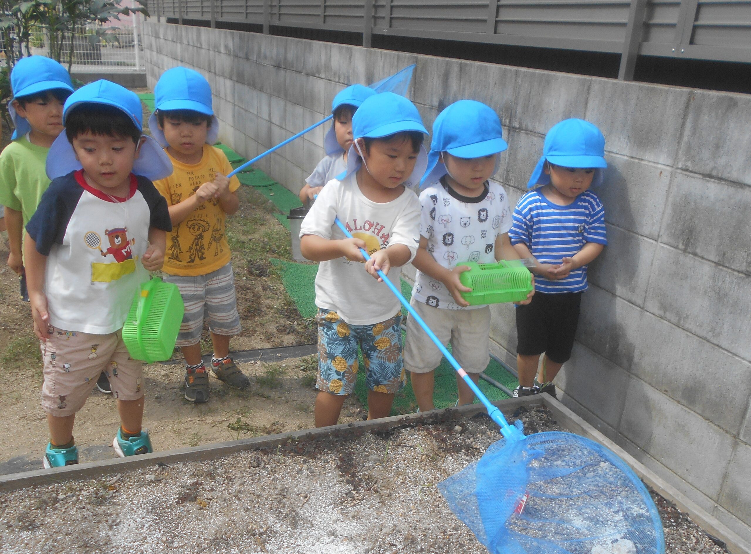 プール遊びが終わり、戸外で思い切り体を動かせるようになりました!虫取りをしたり、みんなでゲーム遊びをしたりと、とっても楽しんでいる子どもたちです。